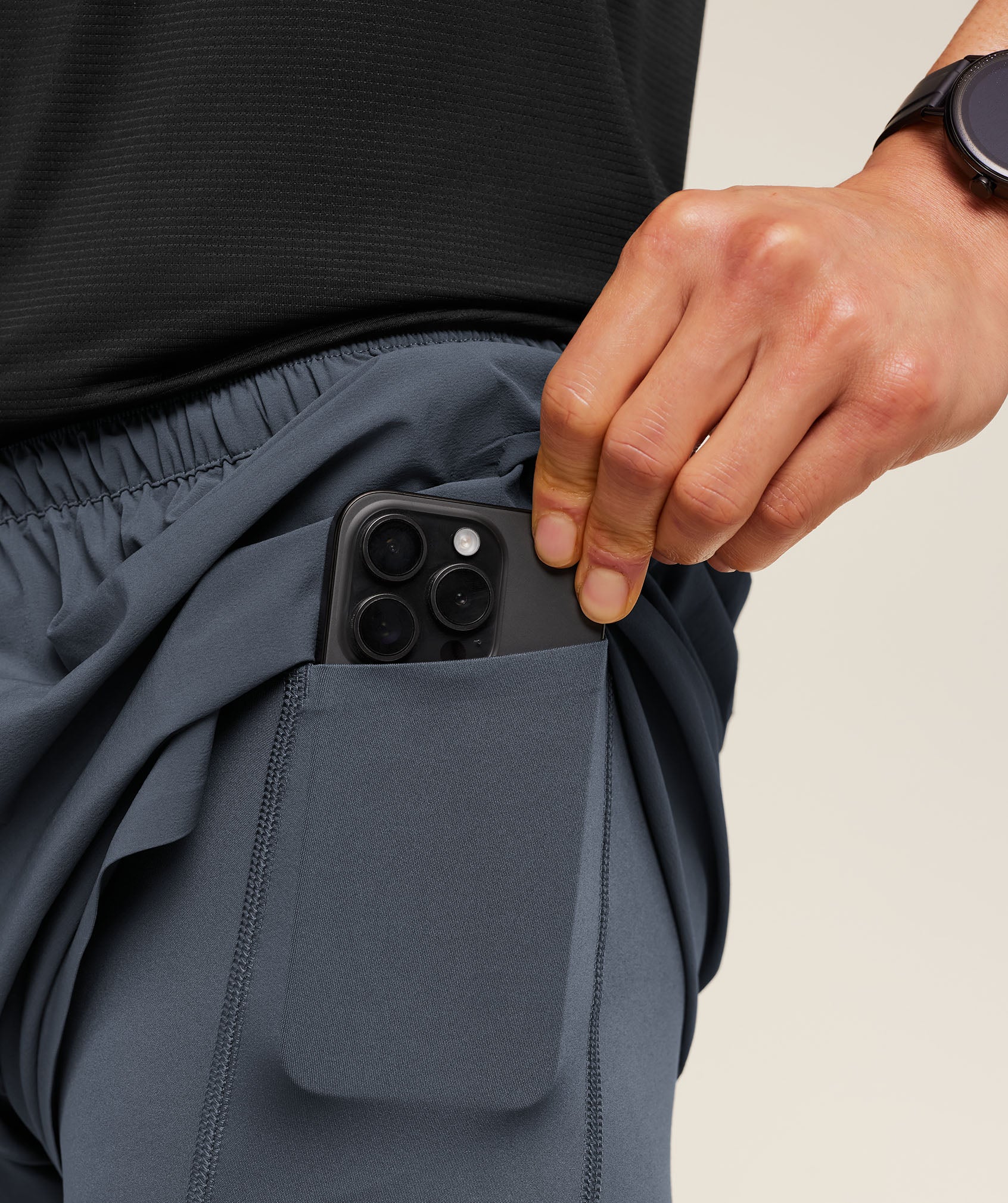 - Sweat-wicking inner shorts with side pockets