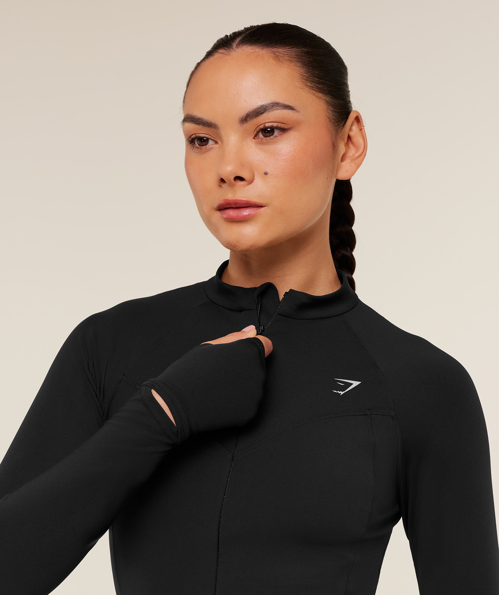 • Thumbholes to keep your sleeves put• Subtle slits to the sleeves so you can wear your watch or activity tracker underneath• Sweat wicking tech to keep you cool & dry • Reflective logo for those late night runs• Flattering dipped hems • Full zip