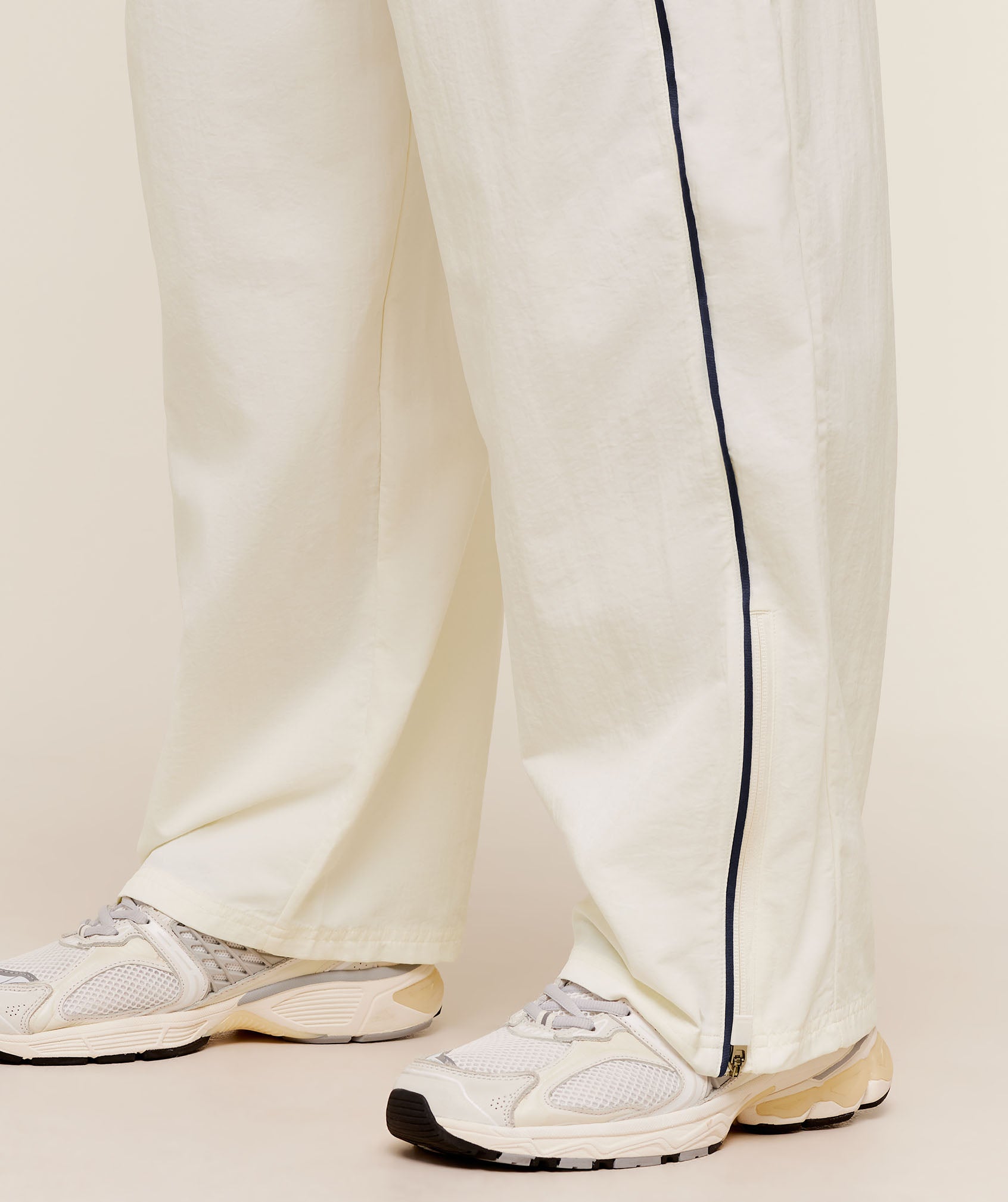 - Zips on the ankles to create a wide leg style when they’re open